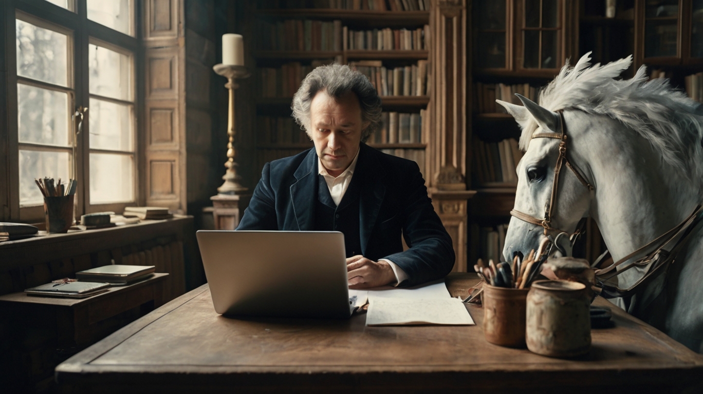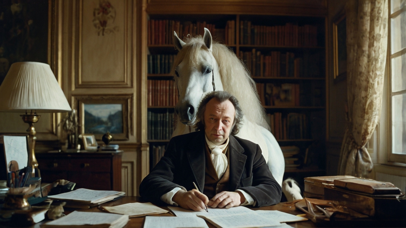 С выраженьем конским