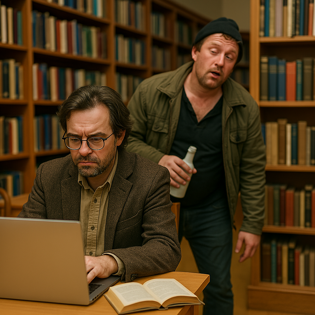 И бомж позади, самогоном разя